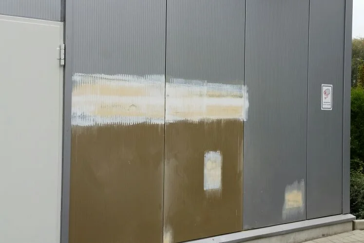 Ein Einbruch ist sehr unangenehm, und deshalb möchte man die Schäden schnell reparieren lassen. Van Heemskerk repariert Einbruchschäden an Sandwichpaneelen, Verkleidungen, Aluminiumrahmen und Türen schnell, professionell und sorgfältig. Wir bringen Ihre Fassade wieder in ihren ursprünglichen Zustand zurück. Auch Versicherungen und Gutachter finden zu uns, wenn es um solche Schäden geht, da unsere Reparaturmethoden sehr kosteneffizient sind. Bei unserem Auftraggeber Elektro Van den Borre im belgischen Mol war ebenfalls erheblicher Schaden nach einem Einbruch entstanden. Da im Gebäude hochwertige elektrische Geräte gelagert waren, musste Van Heemskerk schnell eine Lösung finden, um das Gebäude wieder einbruchssicher zu machen.
