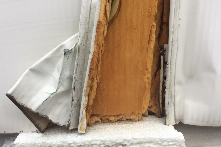Der Schaden an diesem Paneel bei einem Unternehmensgebäude in Bunnik war so groß, dass wir in Absprache mit dem Auftraggeber beschlossen haben, das Paneel auszutauschen. Glücklicherweise war dies konstruktiv möglich und das Paneel war zudem auch beim Paneelhersteller erhältlich. Nach dem Austausch mussten wir nur noch einen kleinen Farbunterschied überlackieren, und die Fassade war wieder so gut wie neu!