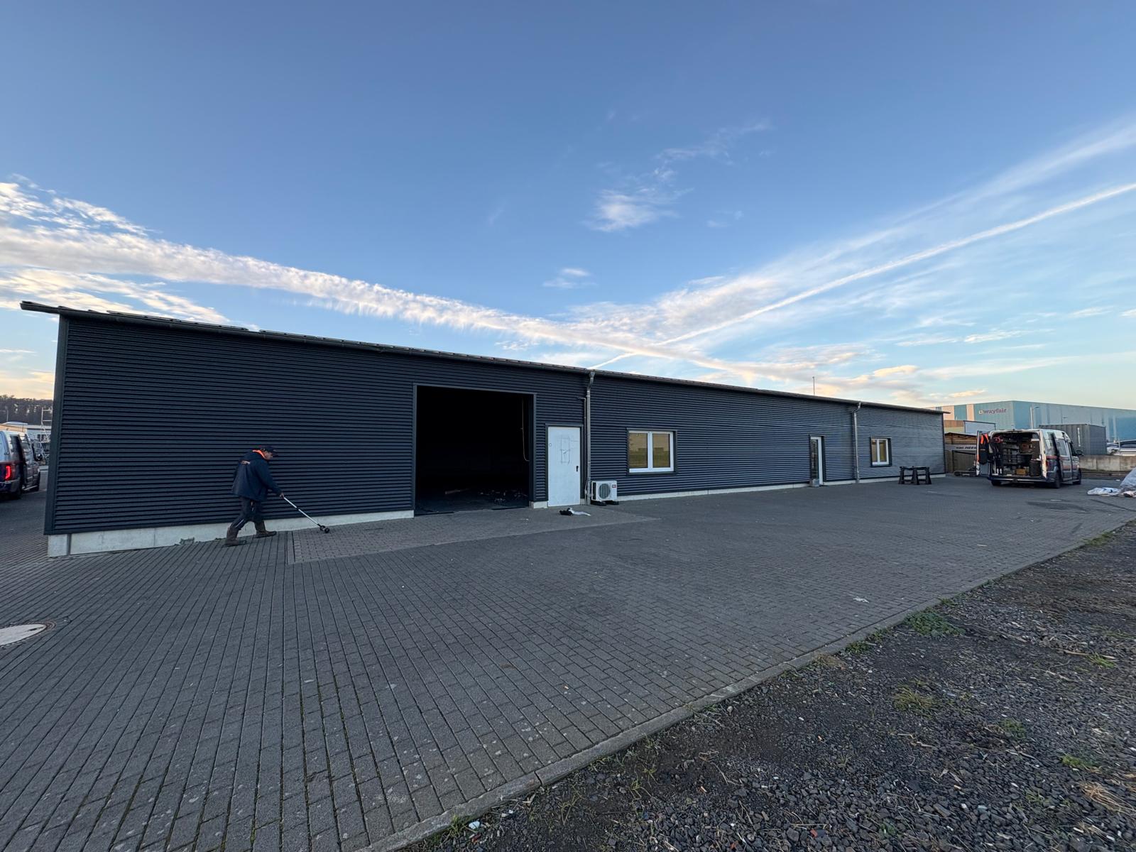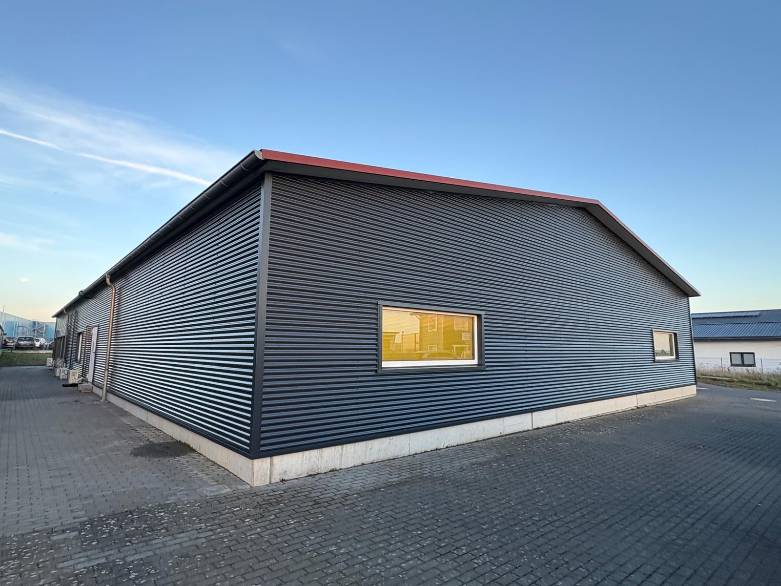 Die Fassadenflächen präsentieren sich nun in der modernen und zeitlosen Farbe RAL 7016. In Kombination mit dem sinusförmigen Profil entsteht ein hochwertiger, professioneller Auftritt, der optimal zur gewerblichen Umgebung passt und das Gebäude optisch aufwertet.