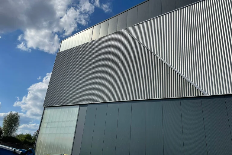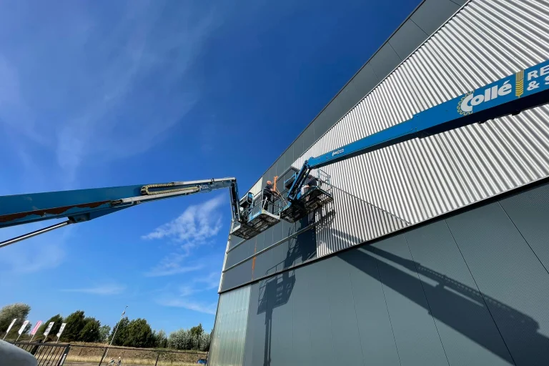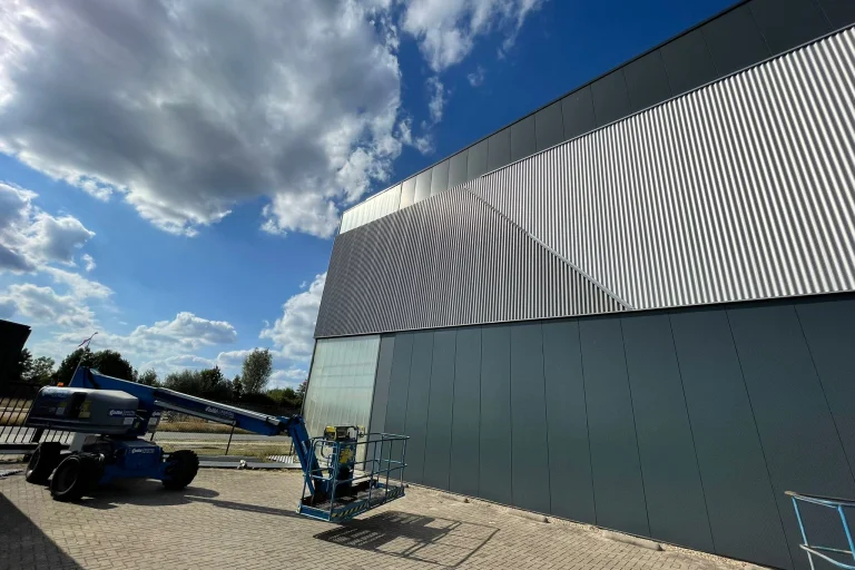 Da die Fassade des Firmengebäudes unseres geschätzten Kunden Headlam in Zutphen zu viele Schäden und lose Teile aufwies, war es (kosten)technisch besser, sich für die Montage einer neuen Platte über den bestehenden Sandwichpaneelen zu entscheiden. Auch dies ist eine Option, die Van Heemskerk Ihnen anbieten kann! Schauen Sie unverbindlich auf unserer Website unter Renovierung Dach & Wand -> Restylen & Renovieren nach den Möglichkeiten.